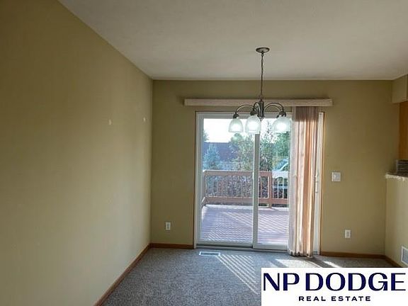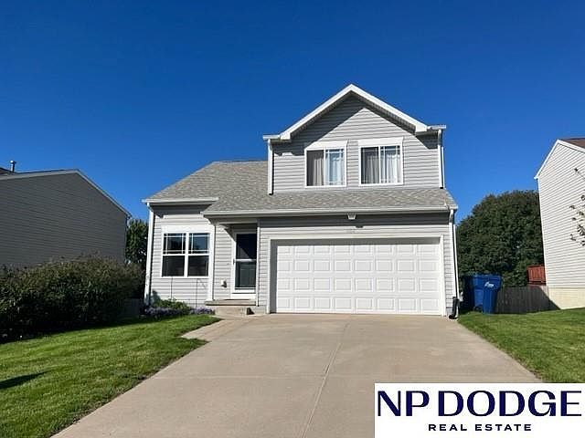 Lots to like about this darling 3BR two-story in fast growing Bennington. MFU, and 1/2 bath, plus two full baths up. Soaring ceilings and light and airy. Kitchen boasts of quartz counters, subway tile backsplash & wood floor. All appls. stay. ALL NEW CARPET throughout. New slider from DR to huge deck. Sprinkler system. New garage door. Driveway & sidewalk in great shape. Vinyl siding. Roof 9 years old. Seller providing 1 year home warranty. A walk-out basement ready to finish however you desire! Awesome shelving in LL & workbench - seller will leave or remove, which ever buyer prefers. Seller is moving soon, so possession is very negotiable. Meadow Ridge Park right across the street!!