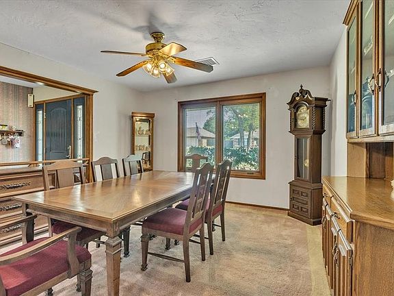 Spacious and Charming! Nestled in a quiet neighborhood of cozy homes, this home boasts an inviting entry and a grand living area. The beautiful rock fireplace is bordered by built-ins, ideal for creating lasting memories. Ample space to host gatherings with a large dedicated dining area flowing into a bar area, and eat-in dining in the kitchen. The large open kitchen has tons of cabinet space and some pull out shelves, an updated backsplash, double ovens, built-in desk and even a pantry. Large laundry room with sink, and plenty of room for the largest washer and dryer. Find a private bed and bath on the east side of the home, and 3 beds and 2 updated baths on the west side. Newer Pella windows throughout. Low E windows in the sunroom with lots of natural light overlooking the backyard, making this the perfect place to unwind (sq ft not included.) Large concrete diving pool in the back needs repair and selling as-is. With the average cost of concrete pool installation around 70K, repairing an existing pool could be a better bargain! 10 person above ground storm shelter in garage, leaving room for 2 cars. County assessor says 3 beds, but it is definitely 4 beds and 3 baths. Split plan. With meticulous care and updates, this home is ready for a new family and new memories!