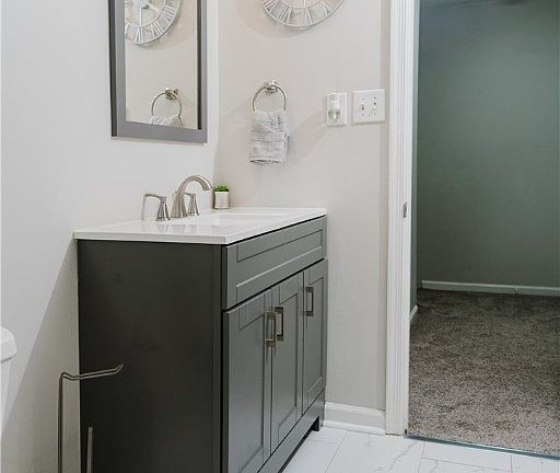 Contemporary vanitySleek countertopsPrivate backyard retreatUpdated lightingNew doorsGlass-enclosed showerRenovated kitchen