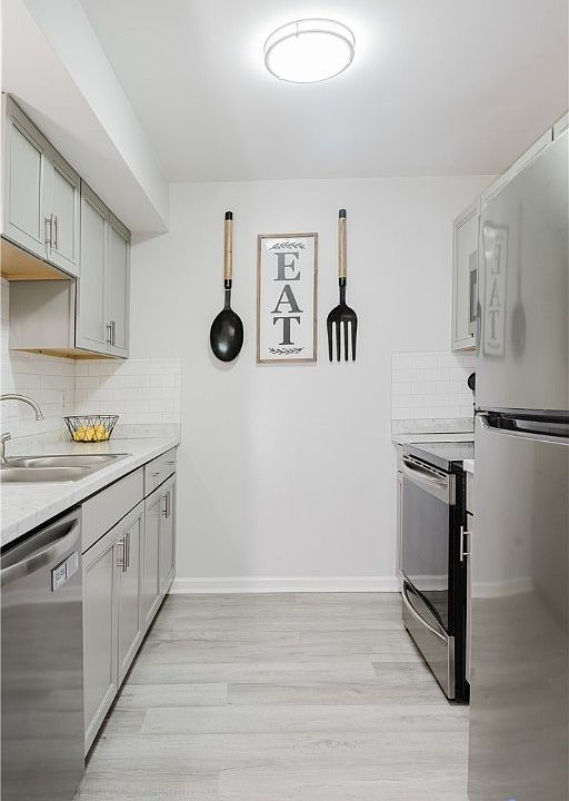 Move right in to this stylishly updated home at 8124 Provincetown Drive. The renovated kitchen features new cabinetry, sleek countertops, subway tile backsplash, stainless steel appliances, and modern flooring. The full bath is a showstopper with marble-look tile, a glass-enclosed shower, and contemporary vanity. Both bedrooms are generously sized with natural light. Updated lighting and new doors enhance the clean, modern look, while an HVAC system replaced in 2022 provides peace of mind.