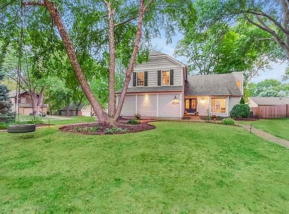 Originality and charm. The brick driveway & walkways lead to the front double doors, welcoming you to a vaulted ceiling living room. Large windows allow in natural sunlight, guiding you to the formal dining room. The kitchen overlooks the family room with beautiful hardwood floors and a cozy fireplace. The large backyard patio is ideal for grilling and entertaining. Upstairs, the main bedroom has a bonus office/reading lounge with a private outdoor deck. Three more bedrooms on the 2nd floor allow plenty of space for kids, work, crafting or hobbies. The large finished walk up basement has a full bath with extra storage space. The community pool is just a minutes walk away. Many close by parks and trails to choose from. Make this Lenexa home yours!
