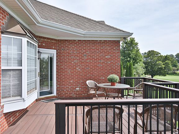 Here's your opportunity to move into one of the sought-after, spacious walk-out homes in the Village of Olde St. Andrews overlooking the golf course! Enter the home from the composite decking front porch, where you will enjoy first floor, care-free, condo living with an open, split floor plan. The owner's suite with a roomy bath and walk-in shower is across the great room area from the other bedroom, full bath and den/flex space with glass French doors. The vaulted living and tray ceiling dining areas flow to the beautifully remodeled kitchen. Great views from all of these spaces across the front of the home! In the well-appointed, classic white kitchen with hardwood floors and granite counters, you'll find a Bosch dishwasher, oven, warming drawer, and gas range with the hood venting to the outside. The back hallway leads past the planning desk and pantry to the laundry room, garage and stairs to the lower level. There's a lot of room in the high-ceiling lower level to spread out or pile in the grandkids! Versatile floor plan allows for multiple uses including a bar, entertainment area and a flex space room next to the full bath. The entertainment center will remain. Notice the Plantation shutters on the wall of windows to the golf course and the French doors leading to the covered patio. Plantation shutters or Silhouette shades grace all of the home's windows. There's plenty of closets and storage throughout, including attic storage accessed by stairs from the garage which is adjacent to guest parking. Neighborhood amenities include the clubhouse and pool plus memberships for golf, tennis and swimming are available at the Standard Country Club. Located between the Watterson and Gene Snyder expressways, the Village is convenient to shopping, restaurants and medical facilities. Come enjoy the sunrises and sunsets!