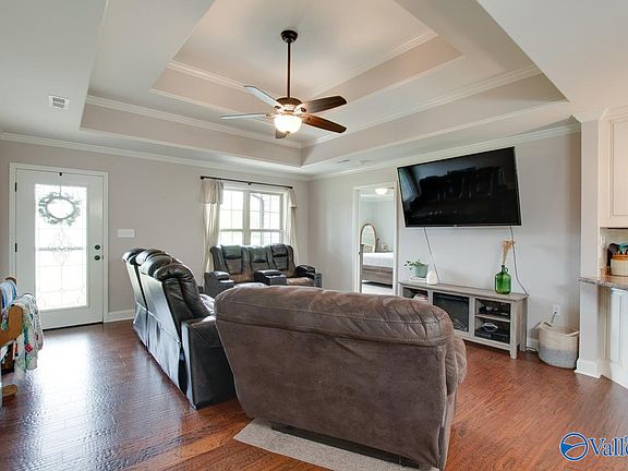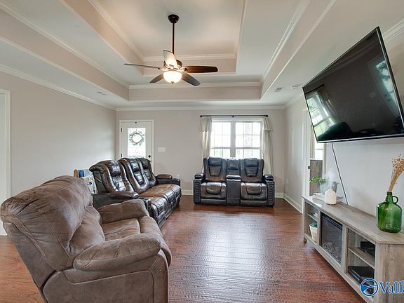 - Features: Ceiling Fan(s), Crown Molding, Smooth Ceiling, Tray Ceiling(s), Wood Floor