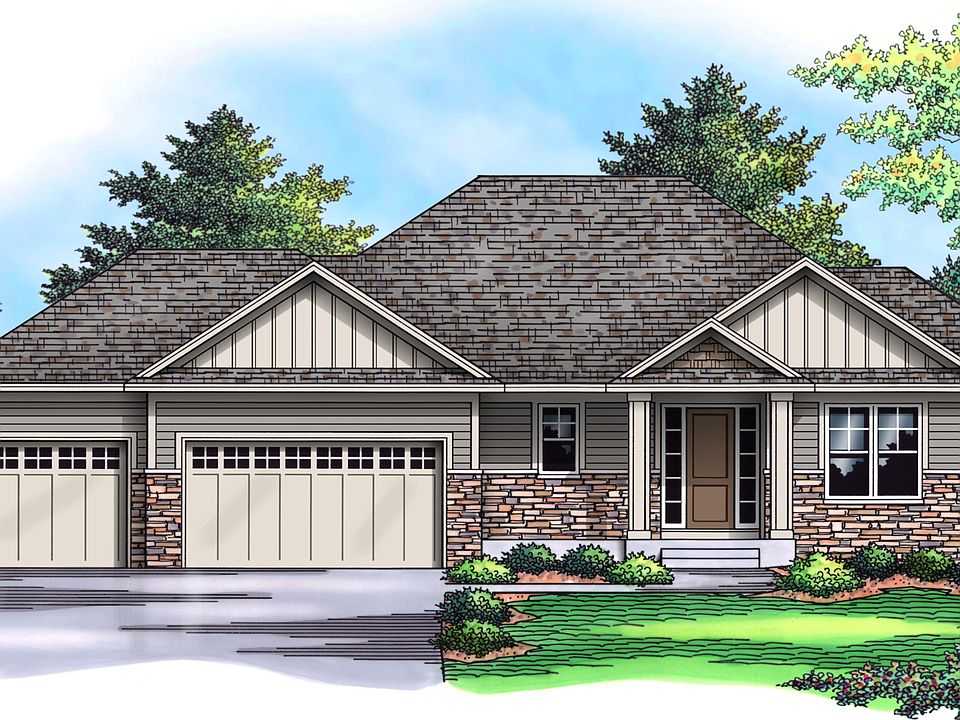 This timeless Greatland Home design, the "Lakeview" is oriented to take advantage of the view. Perched on a hillside, the view boasts gently rolling hills. This rambler has spacious windows that bump out with glass on all three sides in the dining room. The master boasts three large sliding glass doors. Set in the "Berris Ridge" neighborhood, this location has country charm with a mid-town convenience to amenities. Welcome home to Greatland.