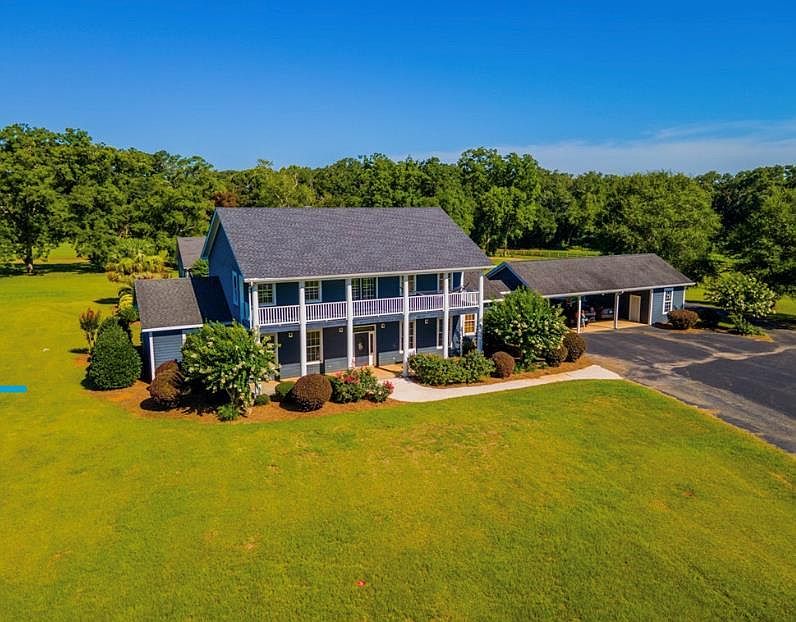 Indulge in a picture-perfect retreat located in Boston, GA with this stunning 24.5-acre property with guest cottage offering a serene hideaway from the hustle and bustle of everyday life. Fully fenced and with room for horses or dog training; you can mix business with pleasure when you call this property your own. The main home offers a luxurious 4,160 sqft of living space with three bedrooms and 3.5 bathrooms, stone fireplace, pine ceilings and walls, and oversized rooms, plus multiple living areas inside and out including an entertainer's oasis. The 1,590 sqft custom guest cottage sleeps up to 10 and is just as beautiful with one bedroom, two full baths, full kitchen, double garage, and all amenities. All appliances are included. The yard is irrigated and the water is provided by a 5 hp deep well. Your new estate is complete with a 2-acre pond with dock and a saltwater pool; ready for summertime fun. There is a 3,000 sqft enclosed metal barn with electricity, alarm system, camera system, and a central vacuum are also on offer.