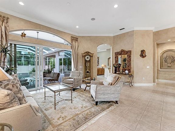 UPDATED ROOF, HURRICANE-IMPACT WINDOWS AND SLIDING LANAI DOORS, NEW A/C, WATER HEATER, AND MORE! This elegant three-bedroom, three-bath residence plus a den/office is designed to exceed your expectations. From soaring ceilings and crown molding throughout to meticulously curated finishes, every detail of this home reflects thoughtful craftsmanship. Step inside and be immediately captivated by the stunning view of your private outdoor oasis. A resort-style pool, framed by a privacy wall, invites you to relax in peace. The expansive lanai offers abundant space for sunbathing, lounging, and entertaining, while the extended seating area, outdoor kitchen, and dining space create the perfect setting for gatherings with family and friends. The welcoming foyer leads to a gracious living room and a formal dining room where memorable holiday celebrations await. At the heart of the home is the gourmet kitchen — a true masterpiece showcasing a spacious central island, high-end appliances, and an abundance of cabinetry and counter space, ideal for preparing everyday meals or hosting elegant gourmet dinners in style. The luxurious primary suite is a true retreat. It boasts a generously sized bedroom with two walk-in closets and a spa-inspired bathroom featuring a whirlpool tub, walk-in shower, and dual vanities. Two private guest suites, each with its own bathroom, ensure comfort and privacy for family and visitors alike. A cozy family room offers the ideal spot for relaxed evenings, while the office or library provides a peaceful setting overlooking sparkling pool waters and lush Florida landscaping. This home is not only beautiful but also secure and updated, featuring hurricane-resistant windows and doors, a newer roof, and modern mechanical systems. An oversized garage easily accommodates two cars and a golf cart. Blending timeless elegance with modern comforts, this residence embodies the best of Florida luxury living. EXPERIENCE The University Park With its mature landscape and sprawling natural beauty, University Park is the premier master-planned community in the Sarasota area. Behind the secured, staffed entrance is an award-winning, resident-owned community featuring 27 holes of four-star rated golf, eleven lighted Har-Tu tennis courts, four pickleball courts, a fitness center, croquet, miles of tree-lined streets for walking or biking, and first-class dining. Also offered are numerous social activities and many social clubs designed to fit a variety of interests. Located only four miles from downtown Sarasota and its spirited arts community, museums, shopping, dining, and first-class healthcare, University Park is an oasis from the City but close enough to all amenities. It's only a short 15-minute drive to some of America's finest beaches, superb outdoor recreation areas, including the internationally renowned Nathan Benderson Park, the famed Ringling Museum, various boating options, and the acclaimed St. Armands Circle. University Park's breathtaking beauty is unmatched by any other. FOYER LIGHT FIXTURE DOES NOT CONVEY