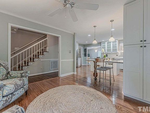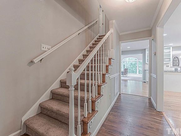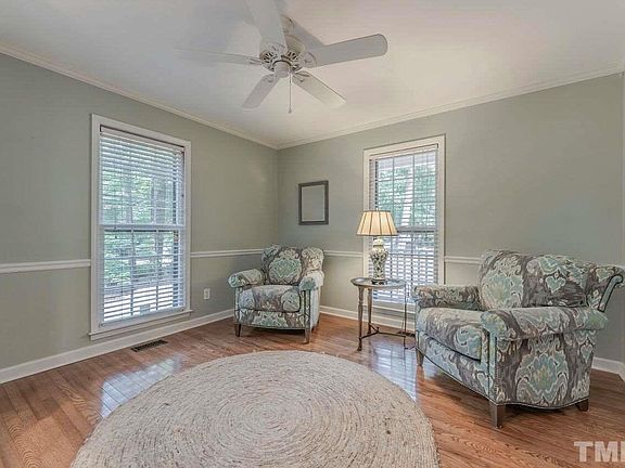 Delightful Colonial Dutch home nestled on over a 1/2 acre wooded lot in North Raleigh's popular Stonehenge. Large Great Room w/ 3 walls of windows overlooks a picturesque & private yard. 2nd living rm downstairs could also serve as a 1st fl Master bdrm (w/ separate closet & full bath). 3 bdrms up (all w/ hardwoods) & 2 more full baths. Updated kitchen w/ sitting area or breakfast nook. 1 car garage w/ lots of storage + a shed. No city taxes or HOA. Conveniently located close to several shopping centers.