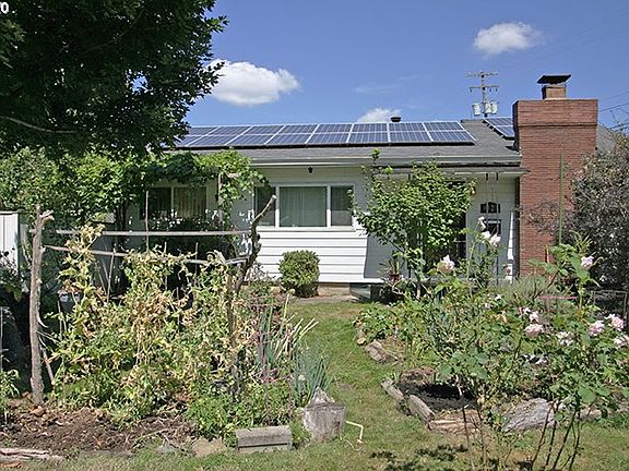 Remodeled Cully Ranch with 5KW owned solar setup and a contract with Pacific Power to buy electrical output. Heat pump/central A/C plus mini-split in living room. Hardwood floors, fireplace w/certified wood stove, fully fenced yard great for entertaining, Newer lighting, paint, vinyl windows, oversized 1 car garage/shop. [Home Energy Score = 9. HES Report at https://rpt.greenbuildingregistry.com/hes/OR10186156]