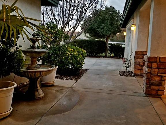 SINGLE STORY CUSTOM HOME NESTLED IN THE outskirts of town. This lovely home Shows Pride of ownership, original owners & immaculate inside and out! Some great Features are the large open floor plan, double pane windows, RV access, shed, over-sized garage, and a Pebble Tech salt water pool to use year round! You open the french doors to your own private fenced in back yard. Greeted by green lawn, flourished lush vegetation, roses, flowers & trees. The back patio extends 750 sq ft, built in surround sound, ceiling fans, a gated tropical Islander pool and spa, ready to entertain any size party! Your Over night Traveling Guests have hookups/dumping station & Electrical outlet for their RV. The interior of the home boasts a formal dining room w/ attached living room where you will find a cozy
