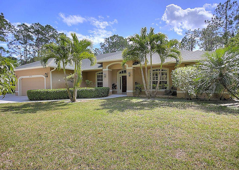 In a neighborhood known for country size lots with custom homes, 8126 150th Court just naturally stands out. Built in 2004, this 4-bedroom 2500-plus square foot home is quality CBS built solid with impact glass windows. The home sits on 1.34 private parcel. High and dry on a desirable paved road. Inside, wide-plank hardwood floors and rich cabinetry. A double-sided wood burning fireplace in living room and breakfast nook. Private guest suite with safe room. Now, factor in a master suite with a sitting area, a gourmet kitchen (complete new appliances) that opens onto a cozy family room, which opens onto a very private pool ... and you begin to understand....