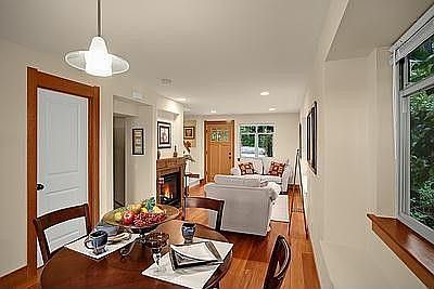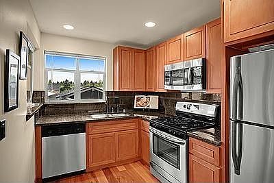REDUCED! Never before on the market this 3 story gorgeous home is tucked away and private. Very desirable light filled floor plan featuring 3 levels of luxury living! Gorgeous custom kitchen with SS appliances, tigerwood floors, designed carpets and beautiful Travertine tile accents. Spacious bedrooms, gas fireplace, deck, patio and off street parking. No homeowner dues and just 15 minutes from Downtown Seattle! Free money! Huge buyer bonus thru Golf Savings bank of up to 3%! Super affordable.