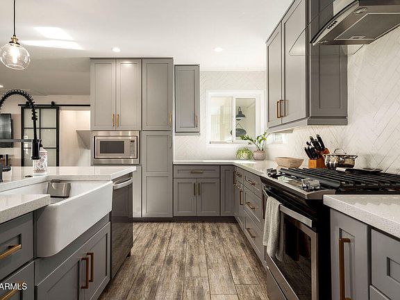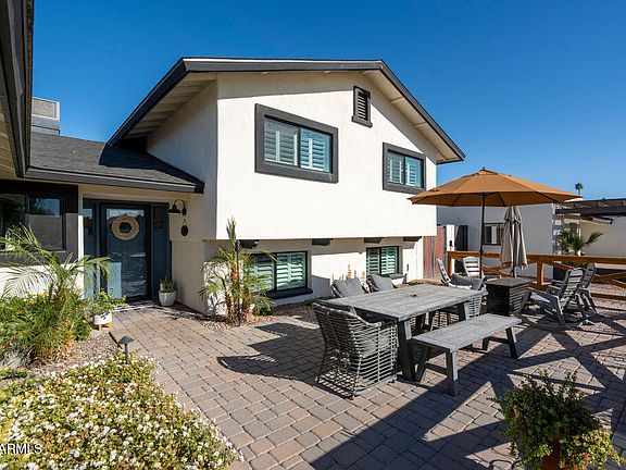 Embrace the good life in this beautiful Scottsdale home where a buyer's wish list doesn't stand a chance against what this home has to offer! This tri-level floor plan is spacious, light + bright! Enter through an entertainer's dream front patio & into the main area where the great room boasts of living, dining, & a stunning kitchen w/ quartz countertops, shaker cabinets, SS appliances w/ gas range, & large island. 2 sets of French doors lead to another large covered back patio, pebble-tec pool & the cutest She shed for additional living space! Back inside, the bottom level boasts of another living room/flex space w/ built-in wet bar, an office, a 4th bedroom, & a full bathroom. Upstairs are 2 good-sized bedrooms, a full bathroom as well as the primary suite w/ walk-in closet & double sinks. Inside laundry & half bathroom are also on the main living area. More added bonuses w/ this home: A 2 Car, epoxied garage w/ built-in cabinets, solar panels for low monthly utilities, a water softener, a 1-year-old hot water heater, a paved drive on the east side of the home allows for extra parking w/ wide gate to backyard, turf in both front & back yards, a mulberry & lemon tree in the back & so much more! This home has been lovingly cared for by a family for the last 5 years. The attention to detail in this home is very apparent & is a home a buyer would be proud to buy! Location is excellent. This street dead ends to Chaparral Park - 100 acres of community aquatic center, dog park, lakes for fishing, basketball, playgrounds, volleyball courts, & so much more! Not to mention all of Scottsdale's shopping & dining hotspots. This home is sure not to last long!