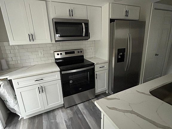 "THIS IS THE ONE.. Full renovation. . Literally everthing is NEW! Fully permitted job!! Gourmet kitchen with white soft close shaker cabinets. Custom quartz counter tops with island breakfast area. . Stainkless appliances. All New flooring and kight fixtures throughout. Two renovated baths with custom tile, new vanities and fixtures. New roof, vinyl siding,, windows, all doors. Additionally all new plumbing and electrical through out. New Hvac with 90 percent efficient gas furnace. New hot water heater. Beautiful patio over looking private level yard . Best house on the market!! . Practially a new house!!