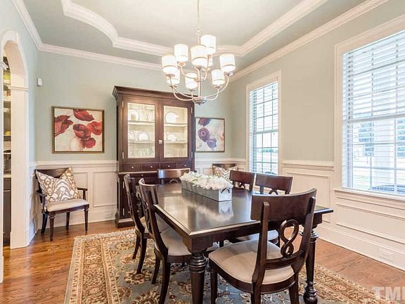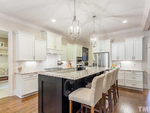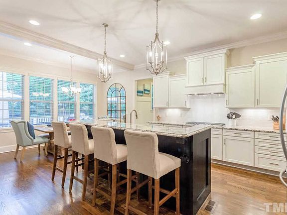 Custom home in prime N. Raleigh! Featuring elegant architectural details, 1st & 2nd floor hardwoods, spacious open layout, Office & 1st floor guest suite. Formal DIN opens to upscale KIT w/island, butlers pantry, & dining area. Light filled FAM Rm w/double sided FP to vaulted screened porch. Bonus Rm w/ WIC. Oversized garage w/workshop & MudRm. Full size walkup attic pre-plumbed for future growth. Deck/patio & fenced yard with stone fire pit. Walk or bike to Lake Lynn, playground, Rec Center and tennis!