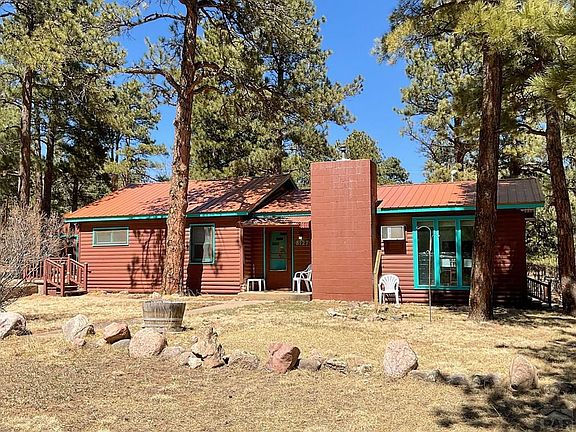 Nestled beneath towering Ponderosa pines on 0.8 acres, this charming three-bedroom home is a must-see. Step inside to a spacious living and dining area filled with natural light from large windows, creating a warm and inviting atmosphere. The kitchen and adjacent laundry/mudroom offer convenient access to the backyard and dog run—perfect for everyday living. A wide hallway leads to a generous full bathroom and three nicely sized bedrooms, providing comfortable accommodations. Outside, the expansive yard offers endless potential for outdoor living, gardening, or recreation. The oversized detached garage includes an additional room ideal for a home office, workshop, or extra storage. Whether you're searching for a peaceful weekend retreat or a year-round residence, this property delivers space, privacy, and versatility. Conveniently located just 30 minutes from Pueblo and approximately one hour from Colorado Springs.