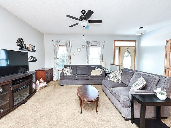 Located a minute from Hwy 10 on a quiet street, just a stones throw away from a lovely playground. This walkout rambler is fully finished and ready to move-in. Pride of ownership shows throughout the home and the recently finished lower level bath and bedroom are sure to delight. Solid six panel doors, recently purchased kitchen and laundry appliances, newer ceiling fan and lawn irrigation system are a few of the amenities that make this a great value!