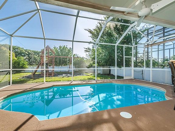 Honey, stop the car! Looking for a turn key pool home in Trinity? Look no further. This two story home features 4 bedrooms, 2.5 bathrooms, a gorgeous pool and a BONUS upstairs loft area! Upon entering the home, you will notice that it has a few features that not every home has such as a double door entryway, high ceilings and lots of natural light flowing through the home. The formal living room and dining room are on the first floor, as well as the updated kitchen and family room that both have a view of the pool. There is also a half bath with a door to the pool area and perfect for guests to use and also a downstairs laundry room with lots of storage. The upstairs has a large bonus/loft area that could be used as another living room, play room or home office. The master bedroom and the other 3 bedrooms are all upstairs along with 2 full bathrooms. The master suite is HUGE and features a very spacious bedroom along with two closets. The ensuite master bathroom features double vanities and sinks, a garden tub and separate shower. The outdoor space is perfect for entertaining with a beautiful pool and patio, very tall screen enclosure, perfectly landscaped yard, and a playground/swing set that could be included with the purchase! This home is turn key, move-in ready and priced to sell. Brand new exterior paint and updated hvac & water heater all within the last year too!