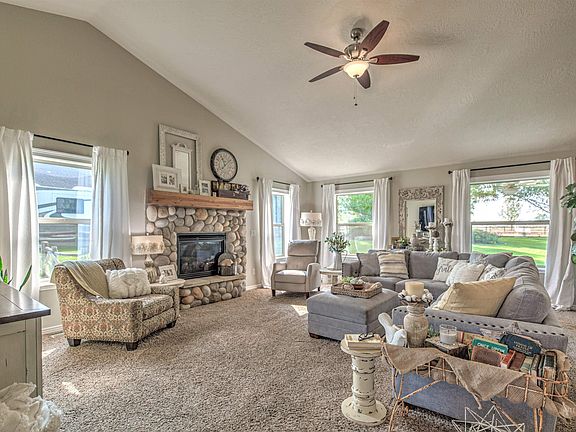 A GREAT NEW PRICE for this charming country home, it might be just right for you! This time of year especially, the river rock fireplace provides a warm cozy atmosphere w/private views from the kitchen. The backyard provides a calm oasis with large trees & a fire pit to gather around on chilly evenings. Updated kitchen w/a Bosch DW, a gas range, a newer microwave & toe kick access for the central vac. Bonus room-great for extra living space with a bedroom & full bathroom. Garage/Shop is 36’x30’ detached & is fully insulated, w/RV bay, a 5T vehicle lift, Hy Bay lights, is perfect for storing & keeping your vehicles in top shape. A mechanics dream with 220 power and outlets throughout! The doors measure 13.9x15 and 13.9x9, with room in the rafters for additional storage. A sport court is ready go. This home has been well cared for and the HVAC serviced every 3 months since 2016.