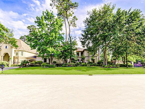 Stunning custom home with gated courtyard entry on corner lot in private gated neighborhood. Entertainment spaces inside and outdoors. Enter the foyer and see through to the impeccably landscaped back yard with huge covered patio, outdoor kitchen and hot tub with rock water fall. Lots of windows provide tons of natural light and outdoor views of lush landscape. Home boasts two story living room with fireplace, island kitchen open to family room with fireplace & media center, large master suite with gas log fireplace, executive master bath w/ walk in shower, large closet w/built ins. Guest bedroom with bath down. The second floor features three bedrooms all with baths, game room, lounge/TV room, library loft, office/craft/storage area and computer alcove. View of lake & falls from lounge/TV room or game room and large covered balcony. A 3 car split attached garage provides for good storage and workshop area.