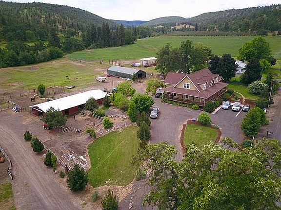 Beautiful Craftsman home with open floor plan for entertaining, hickory flooring, vaulted ceilings with high windows and beautiful lighting. Master on Main, Walls 13 inch thick, nothing was spared on construction of this magnificent home. Includes both banks of Fifteen Mile Creek, a year-round, salmon-bearing creek. The home has 14 acres, or add the additional 283 acres of tillable farmland and woods, all in the coveted Dufur Valley.