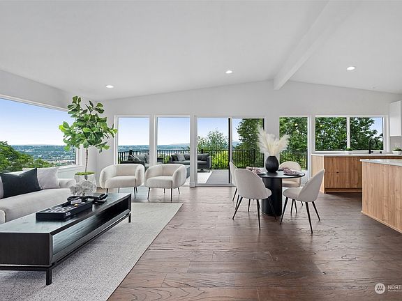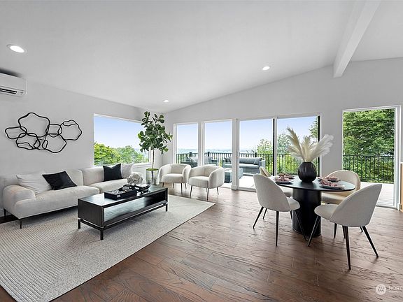 Breathtaking fully renovated home in Highland Park w/ an astonishing view of Space Needle, Seattle Skyline & Cascade MTs. the open concept living area greets you w/ amblance of elegance. The interior design is exquisite, showcasing high-end finishes & attention to detail. A Stunning Gourmet Kitchen w/ custom cabinets, quartz counters, high-end SS appliances & large island w/storage. Retreat to the balcony w/ the captivating scenery or relax in the primary room features a tastefully updated ensuite featuring a walk in shower, floating vanity w/ dual sinks, and ample of space. On the lower level you will experience a huge Rec Room w/ modern FP, spa-like BA, 2BD w/ access to a private covered patio. Close to shopping, highway, & amenties.