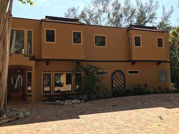 Seasonal rental: Once you enter through the wrought iron gate you will be transformed into living the dream. Available for 30 days minimum stay, this gated and walled estate is located on the southern end of Siesta Key offering a relaxing retreat. With 220 feet of shoreline on Heron Lagoon this exquisite 4 bedroom 3.5 bathroom home boasts tranquility. Whether you relax in the saltwater pool, kayak (kayaks available for your use during your stay), watch the wildlife on the water from your private dock, or get some sun on the second-floor terrace overlooking the lagoon, this home is sure to please. Gourmet kitchen with large island, state of the art appliances, and a panoramic view of nature, all in an elegant, yet casual design, this home captures the essence of resort living. Expansive ceilings, open floor plan, that includes several separate living areas, allowing for both individual space and large gathering areas. Majestic Banyan trees and an impeccably landscaped environment will make you want to leave the world behind! Once you enter Casa de los Arboles you will feel like you have found a true tropical paradise. Minutes from the epicenter of Siesta Key Village, and the south bridge to the mainland. Best of all, the worlds finest beaches are less than 5 minutes away. No pets and no smoking. Come to Florida to rent the dream!