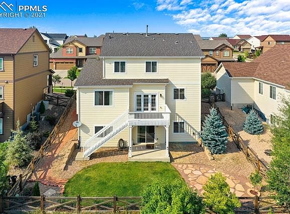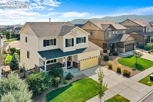 Fall in love with the best opportunity in Banning Lewis Ranch. Incredible Pikes Peak views and great location top off all of the must-haves to this home. 5 bedrooms, 4 baths and walkout basement with new basement flooring and plumbing for wet bar are some of the highlights. Other highlights include new gas in kitchen, new wiring for potential hot tub, double ovens, newer HVAC/A/C and newer carpet. Wonderful front porch and fire pit in the back add to the character of this home. Come on in and give it your flair and style. The oversized garage is perfect for extra storage! This home really has it all. NEIGHBORHOOD FEATURES INCLUDE AN AWARD WINNING SCHOOL-BANNING LEWIS RANCH ACADEMY, OVER 65 ACRES OF PARKS AND TRAILS, TWO POOLS, EXERCISE GYM AND RECREATION CENTER. This home is centrally located in Banning Lewis Ranch. Great location!!!