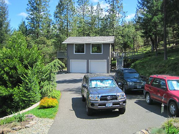 Don't miss this turn-key property! Enjoy the serenity of the Applegate Valley in this lovely home and setting and fall in love with the privacy and views!! This property sits on 10.71 acres w/2 tax lots. Main home features 1512 SF 3 Bedrooms and 2 full baths, granite counters in the Kitchen, warm and inviting living room with an abundance of windows to allow the outside beauty of nature to be enjoyed inside. Cozy up to the woodstove or go outside and soak in the views on the wrap around deck and patio. Relax in the hot tub that's right outside the master bedroom. Above the detached 24x24 garage is a nicely appointed 576 SF Guest quarters w/a full bath, amazing views and 2 balconies. BLM borders most of the property and offers privacy, hiking trails and wildlife. Property also includes 2 outbuildings, one is being used for wood and the other one is 12x20 plenty of room for a workshop or storage! RV and Boat parking too!!