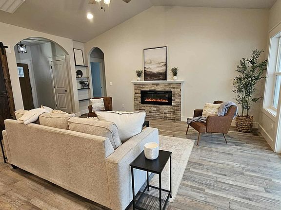 Come check out this lovely, new cozy home, built by Homestead Investments Inc. This 3 bedroom 2 bathroom 1560 sqft home with a finished 2 car garage. This exquisite home is very unique with continuous storage space. Every inch of this home has been utilized to have a purpose. Granite countertops with custom built cabinets in the kitchen, bathrooms, and laundry room. Built in bookshelves in the flex room and in the living room, with beautiful brick like tile on the electric fireplace. Master bedroom has an electric fireplace as well with a his and her walk in closet with automatic lights along with a dual vanity in the bathroom. There is LVP throughout the home, with high quality carpet in the bedrooms. Outside this home there is a full sprinkler system with sod in the front and back yard. Back yard is fully fenced. Come step foot in your dream home!