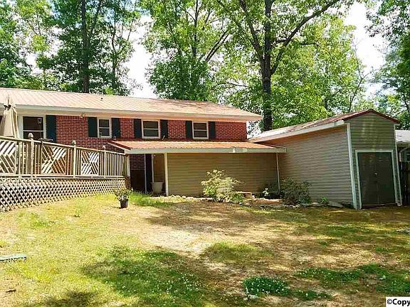 If its space you need, this is the one! Very well maintained, full brick rancher within walking distance to Arab High School. Oversized wooded lot fronts 3 streets with a fenced in backyard, 2 storage buildings out back and a large deck for entertaining guests and family. Inside features include 3 bedrooms, 3 baths, a private office area, breakfast area, large kitchen with stainless appliances, formal living room with fireplace and built ins, a formal dining room open to a brick hearth and inviting foyer/entrance. The large den/family room has plenty of additional storage space, laminate flooring and exposed beams. Beautiful hardwood and tile flooring through out the rest of the home.