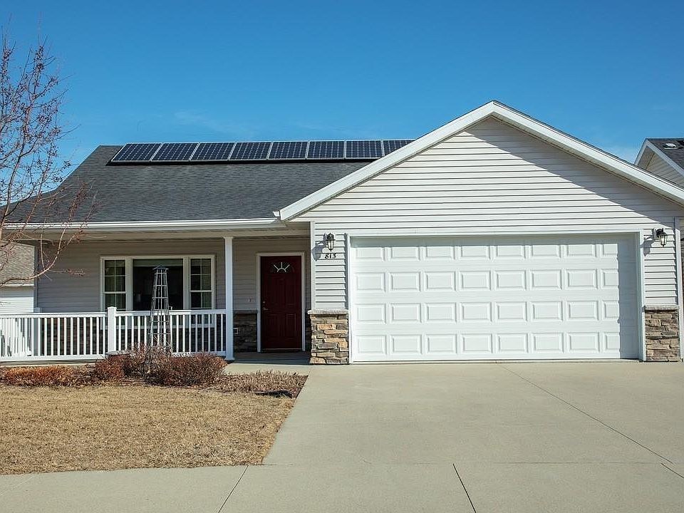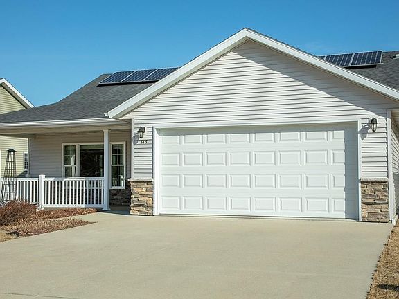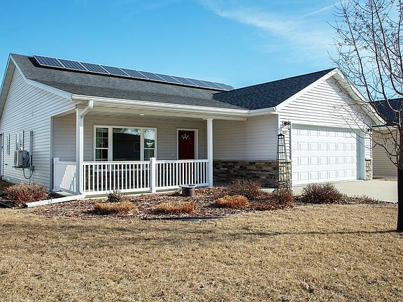 NEW LISTING IN PARKSIDE DEVELOPMENT - ONE OWNER - AFFORDABLE QUALITY IN A FANTASTIC LOCATION: Newly constructed in 2016, this 1,194 SqFt Parkside Villa offers zero-step entry/exit and easy main level living thoughtfully designed throughout the home’s open floorplan. A covered front entry porch leads into the open foyer and spacious front living room. The modern kitchen provides abundant cabinetry, large countertop space and a peninsula area for additional dining. All kitchen stainless-steel Whirlpool appliances are included. Adjacent to the kitchen is the formal dining room with its walkout to the back covered porch. There are two comfortable bedrooms; a primary bedroom with a ¾ bath and walk-in closet, and a second bedroom perfectly suited for home office and guests. The main level laundry area, with its included washer and dryer, stands next to the mechanical room and the 20' x 22' (440 SqFt) double attached, insulated and fully-finished garage. This home features comfortable geothermal in-floor heat, a living room heating and cooling mini-split/heat pump and 3kW solar array providing years of electricity production & cost savings via net-metering through MidAmerican Energy Company. Parkside Development also includes: neighborhood green space; a paver street; Homeowner's Association; provided lawn care & snow removal and sidewalks for your enjoyment and safety. This is a one-owner, pet-free home in move-in-ready condition. Stylish color accents, custom-sewn curtains, valences, sheers, plus blinds add design flair and appeal to this lovely property. Don’t hesitate, this one is special!