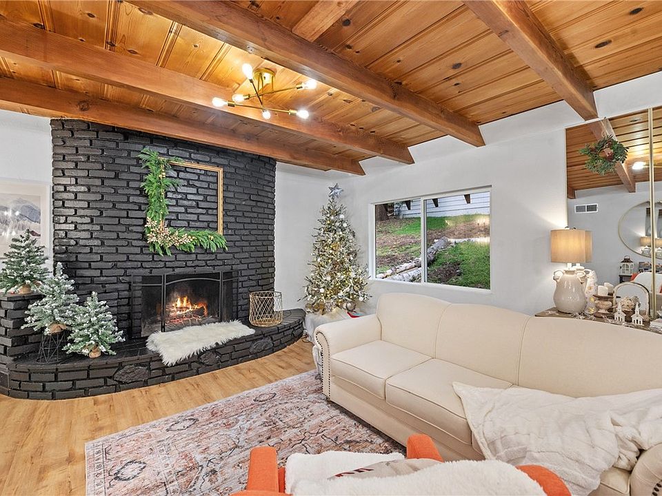Modern Farmhouse Retreat Home in Crestline. This 3 Bed 2 Bath home features a Gourmet Kitchen with New Cabinets, New Stainless Steel Appliances, & New Quartz Countertops. New Paint, New Farmhouse Oak-look Floors. Designer Spa-Like Bathroom. Large Living Room with a Beautiful Fireplace for those Cozy Nights! Outdoor Deck with a Storage Unit. Surrounded by Nature and Forest. Crestline is a mountain community with a Beautiful Lake, Swimming & Fishing Beaches, Walking, Hiking and Biking Trails. Checkout the Virtual Tour for more Photos. Hurry this won't last long!
