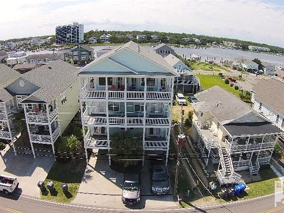 Beautiful & unique 3 story townhome w/ canal & ocean views. This 5 bedroom 4.5 bath home is the perfect beach oasis featuring flowing wood floors, a convenient elevator accessing all floors, fireplace in the spacious living room, a gourmet kitchen w/ granite countertops and lots of counter & cabinet space, multiple whirlpool tubs, & large bedrooms on the 1st & 2nd floors. The home boasts balconies and decks with stunning views on all 3 levels, an outdoor shower, & 2 vehicle carport below. Just a walk away from the beach, shopping, and restaurants in popular Carolina Beach!
