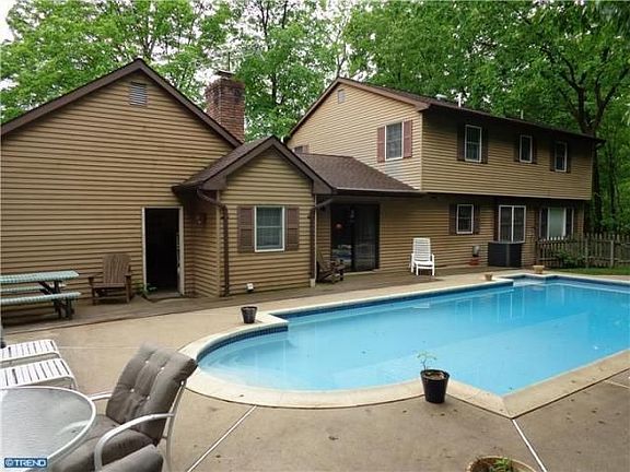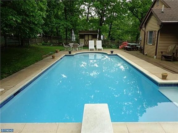 Big Bang for your Buck. Home is 2260 square feet, 4 bedrooms, 2 baths upstairs and a powder room on the main floor. Bathrooms have retro small mosaic tiles. Large & spacious eat in kitchen. Formal dining room. Formal living room. Huge family room with a brick fireplace. Home is situated on a corner partially wooded lot. 2 car garage, shed for garden supplies. Lovely in ground pool for your summer enjoyment. You can vacation in your backyard. Property is a must see - priced too sell.