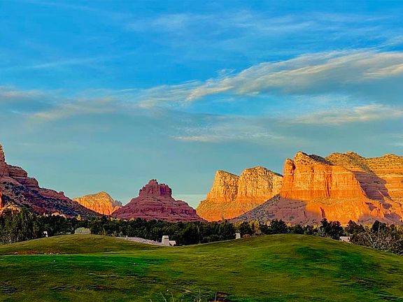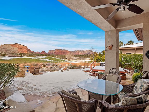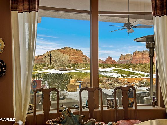 These are the views everyone wants from their backyard! Sweeping Red Rock formations of Bell Rock, Courthouse Butte and Castle Rock are the majestic backdrop for the 14th fairway of the Sedona Golf Resort. Patio boasts a tranquil water feature, built in BBQ, fire pit, and covered seating area. Large kitchen with deluxe granite counters, island, breakfast bar is perfect for preparing gourmet meals. Cozy Family room takes in the views over the fireplace. Formal Living and Dining have 12 ft ceilings and picture windows and a wet bar for entertaining. Master bedroom also has tremendous views with access to the patio. Master Bath has dual vanities, shower, soaking tub and walk in closet. Comfortable guest suite and 2 other bedrooms currently used as offices complete the home.
