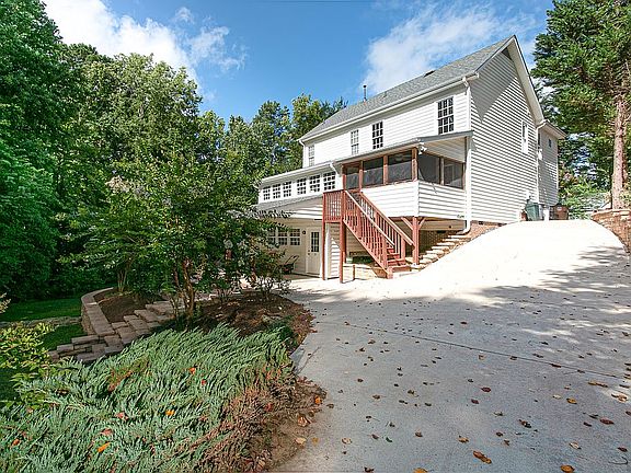 Upgraded home w/ two stry living rm, firepl w/gas logs, hardwd flooring down, formal dining/office, breakfast/sunrm w/tile flooring, & kitchen totally upgraded w/granite, tile & newer appliances. New roof 6/2020. Beautiful master suite. Downstairs features large bonus/party rm w/ full bath leading out to an entertaining bk yd. Two large patio areas w/one covered. Stone patio. Extra paved parking areas to side of home. Whole house waterr softener, screened porch & large front wrap porch. Creek in rear.