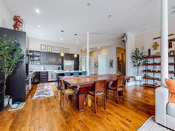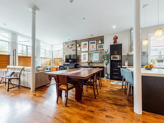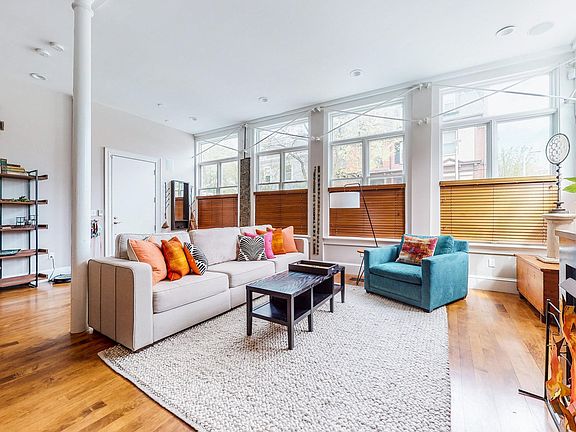(Available 7/1, 7/15 and 8/1 Meticulously renovated in 2014, this exceptional two bedroom, two and a half bathroom duplex was once the Hayden Bakery in the City Point neighborhood. Features include a wall of windows that wrap the open living area and fill the space with natural light. Soaring 11' ceilings, exposed brick wall, and beautiful hardwood floors give it a loft-like feel. A perfect place to entertain, the state-of-the-art kitchen w/ Viking appliances, vented indoor grill, custom Mahogany cabinets, large island w/pull out pantry, adjustable shelving, and solid 3" Corian countertops is a chef's dream. Also on the main living level, a powder room, pantry closet, and a fabulous bedroom with its own entrance custom closet, built-in murphy bed, and en suite bathThe lower level is a private master retreat w/Bois Fumo floors, extra-large custom walk-in closet, spa-like en suite bathroom w/Carrera marble, and Jacuzzi tub. Additional features include gas fireplace, Nest thermostat, and LED lighting. Only one pet allowed per HOA rules.