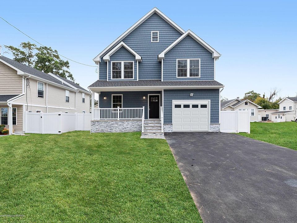 New Construction in sought out W. Belmar. This home boasts hardwood floors thru out large open floor plan perfect for entertaining @the shore. Stunning kitchen w/42 inch white shaker soft close cabinets, stainless appliances + oversized Island. Slider doors off living room onto paver patio in secluded backyard enclosed w/white vinyl fencing.1st Floor In Law Suite great for guests. 2nd floor master is enormous in size w/vaulted ceilings, walk in closet + top notch bath including Double vanity + large walk in shower w/bench seating. 3 additional beds, 2 baths + laundry complete the 2nd level of this 3300sqft. beauty. This quiet neighborhood just blocks from the beach in desirable Wall Twp, close 2 NYC train transportation, shopping+restaurants