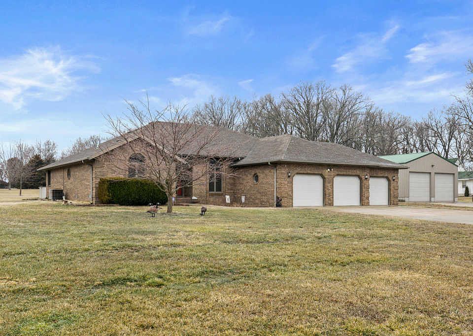 All brick, 3 bedroom 2 full bathroom home on 3 acres in Ozark school district! Home offers spacious living room with tray ceiling, formal dining room, kitchen has an abundance of cabinet space, electric cook top, wall oven, breakfast bar, dining area, with new disposal, dishwasher, and backsplash. Large master suite has its own private access to back patio, raised ceiling, walk-in closet, dual sink vanity, and walk-in shower. There are two additional nice sized bedrooms, full bathroom, and laundry room with cabinet space. Covered patio out back with additional patio with a gazebo. There is also an above ground pool and over-sized attached 3 car garage with climate control and extra storage room. Large 30 x 50 detached garage/shop that is heated and cooled. There are 60 solar panels that service both house and shop. Call to schedule your private showing today!