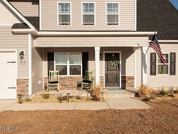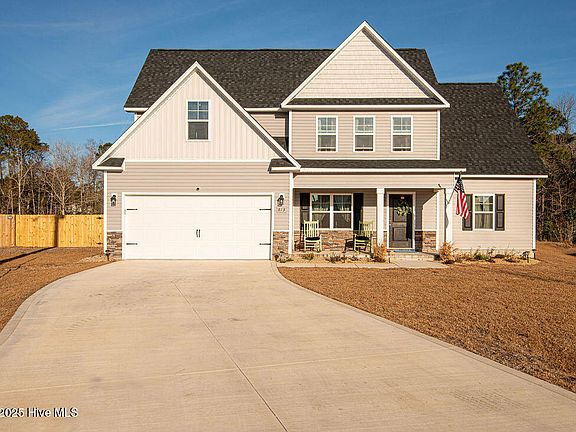 Welcome to this almost brand-new home in the growing Cotton Hill neighborhood situated on one of the largest lots! Built in 2024, the home features a spacious 1.6 acre, partially fenced in lot that backs up to the woods for increased privacy. The main floor boasts a formal dining room, open concept living room and kitchen with easy access to a large owner's suite. The living room offers vaulted ceilings, an electric fire place with a seamless transition to the kitchen. Seller updates include, tile backsplash, quartz countertops, bathroom light fixtures and mirrors, and a recently installed wood fence in the backyard. The primary bedroom offers vaulted ceilings, separate shower, garden tub and a huge walk-in closet. Walk upstairs to 2 additional bedrooms, a full bathroom, and spacious bonus room that can be used as a 4th bedroom if desired. AGENTS please read agent only remarks