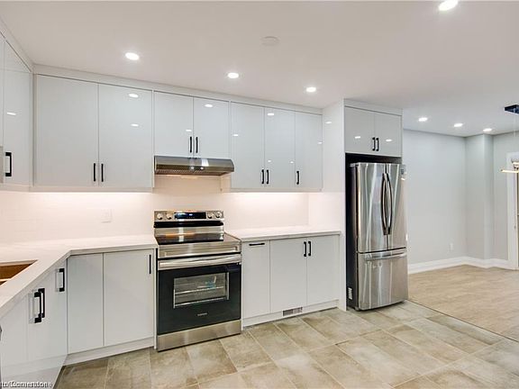 A Great Sought out location in Kitchener! This beautifully renovated Link house just connected by the garage only, vibe of Detached House is a great opportunity for the first time home buyers or investors. This open concept home is move in ready featuring Bedrooms, 2.5 Bathrooms, Upgraded Kitchen with Quartz Countertop, Carpet Free, Modern Appliances, pot lights, finished basement with Full washroom, almost brand new Furnace, nestled into the quite neighborhood of Lackner Woods, over 1600 Sq. Ft. of total living space, close to many amenities, parks, walking trails. Don't miss this opportunity and book your showing now. Offers welcome any time.