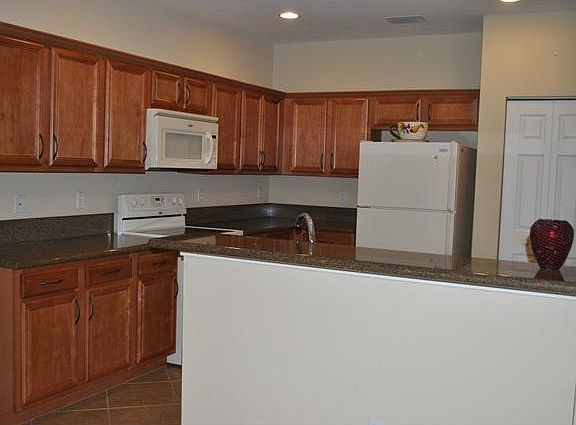 Beautiful newer CBS home in gated community of Sunterra. Tile floors in all living areas, Berber carpet in bedrooms, granite and up-graded cabinets, knock-down walls, French doors, Jacuzzi tub & covered lanai