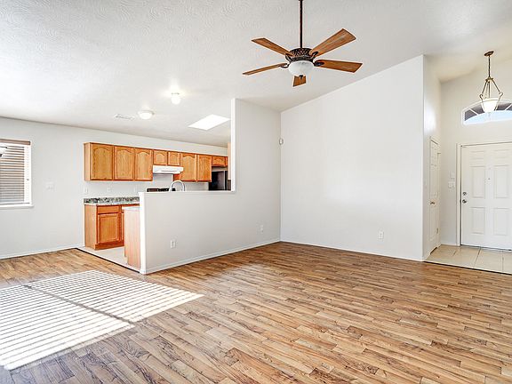 If you love views, privacy, and open living space, this Rio Communities golf course neighborhood home is the perfect fit. The single-story layout features the kitchen open to the living room with vaulted ceilings and gas fireplace for chilly winter nights. The kitchen has tons of counter space, and plenty of storage with abundant cabinets and a pantry. The primary suite is the perfect retreat after a day of golf with new carpet, walk in closet, separate shower, corner triangle jet tub, and double vanity. Enjoy the mountain views from the open land behind the home. Solar PPA means low monthly utility costs and the freedom to cool the home comfortably all summer long with the refrigerated air. All appliances convey including the washer, dryer and fridge.