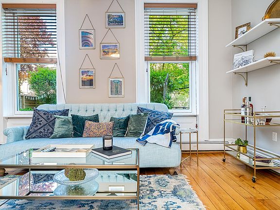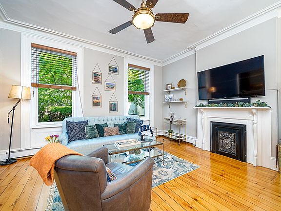 Spacious and lovely Garden Street home flooded with lots of natural light! Perfect mix of modern and traditional Hoboken character featuring decorative mantel, wide trim, pine floors, and 10 foot ceilings. Newly renovated kitchen includes new custom soft close cabinets, exposed brick, large pantry, oil rubbed walnut island and new stainless steel appliances including a 6 burner Bertazzoni gas range. Spacious living room overlooks a beautifully landscaped common yard with bluestone patio and gas grill. Huge master bedroom with a renovated master bathroom with a freestanding cast iron bathtub, a separate shower, double sinks, Carrara marble floors and stained glass window. Basement includes additional storage and a new washer/dryer, boiler, and hot water heater. Just 2 short blocks off Washington Street, close to transportation, parks, tennis courts, shopping, and dining. Parking available 1 block away Tenant is responsible for gas and electric, as well as a 1 month broker's fee. Free shared laundry and storage area in basement. Yard is common.