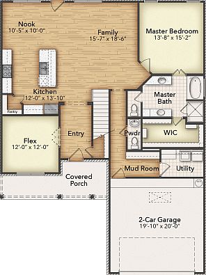 Our newest 2-story design?and the largest floor plan offered at Quail Run?cleverly blends the living spaces you need and want. The 2,475-square-foot Barrow floor plan incorporates 4 bedrooms, 2.5 baths, and an open concept in the main living area, with an easy flow from one space to the next.The kitchen, dining area, and family room come together, each with a dedicated space but no walls to divide them?perfect for togetherness. Get creative in your smartly appointed kitchen, including a center island, granite countertops, walk-in pantry, decorator cabinets, and stainless steel appliances.When you need a break from that togetherness, it's just a few steps to the master suite, which we situated on the first floor for privacy and convenience. Your retreat occupies one side of the home, in true suite style. Unwind in an oversized bedroom where you can view your backyard, maybe from a sitting area. The master bath is styled with dual, but separate, vanities, a soaking tub, walk-in shower, and a private water closet. Your walk-in closet features our higher standard for closet organization. If all this space is quite enough, we've included a flex room off the foyer, with a double-door entry. Transform it into a form dining or living room, home office, study, man cave, playroom, or even a guest room. It's never difficult to turn a bonus space into something worthwhile.