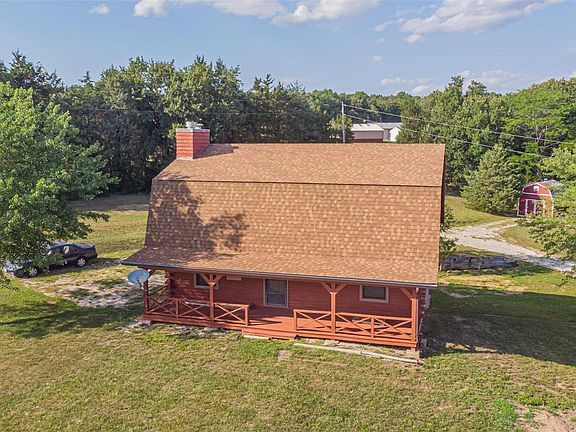 ** 27 ACRES WITH 5 Bedroom home & office!! ** End of road setting for your private domain, nice field/pasture, natural spring, woods for privacy and hunting or trails, shed, extra electric hookup & septic for guests & can tie into well……Also check out the front covered porch all set up with porch swing to enjoy your surroundings of your rustic log home setting complete with fireplace in living area with wood bead board ceiling, main floor laundry, new laminate flooring in upstairs bedrooms, new carpet in lower level family room w/TV, home has been freshly painted inside & out, main level bedroom, complete office set up just waiting for you, add on wood stove w/thermostat, service area bar in lower level can be converted to 1/2 bath (plumbing hookup under carpet by sink), end the day with a barbeque on your freshly stained large back deck. So much room & country living for your family to enjoy! And best is you are just about 15 miles from I-44! Don’t miss out! You won’t want to leave….