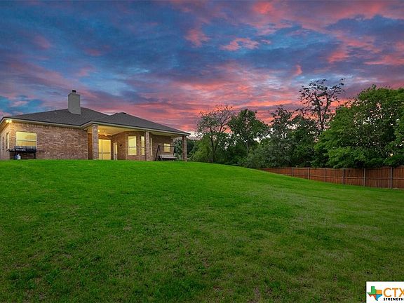 Located on an oversized 0.5 acre lot on a quiet cul-de-sac, this 3 bedroom Carothers built home seamlessly combines comfort, style, and the joys of modern living. Featuring a BRAND NEW ROOF and updated landscaping, this home is sure to impress. Upon entry, the open floor plan connects the living room to the kitchen and dining area, creating an inviting space perfect for gatherings. The kitchen highlights stainless steel appliances, granite countertops, undermount lighting and an island featuring additional storage. In the living room, you will find a wood burning fireplace, wood look flooring and surround sound perfect for any movie night. Adjacent to the living room, through elegant glass doors, discover a versatile office space that can easily transform into a formal dining room or a fourth bedroom. The master suite is a sanctuary of luxury, featuring a jacuzzi tub, walk-in shower with rainwater faucet, and walk in closet. Step outside to the expansive covered back patio and yard. Watch the Temple 4th of July Fireworks show from the back porch or catch a game on your flat-screen TV – the perfect setting for entertaining or relaxing evenings. The tree lined fence and no visible rear neighbors provides all the privacy any family would enjoy. Only 5 miles to Baylor Scott & White, 3 miles to Belton Lake or 3 miles to I-35, this beautiful home is a must-see for those seeking both convenience and tranquility. Schedule your private tour today and discover the unparalleled charm of this West Temple gem.