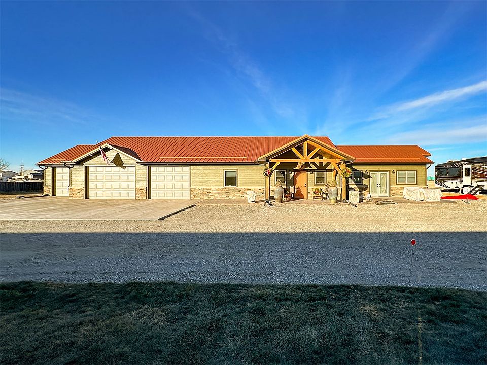 Come home to a 2022 rambler on 5 residential lots, just outside of charming Valier, MT. This home is going to blow you away with every over-the-top detail and so many costly extras that enhance your experience, so much that you'll never want to leave. Rooms have tongue-and-groove pine lodge-aesthetic ceilings, radiant heat and the main rooms have vaulted ceilings. The great room boasts a stone fireplace, surrounded by shelves, lighting around the fireplace AND along the base of the ceiling that is on a remote control, so you can create any mood you'd like. The bar is like another kitchen with its own top-controlled microwave, dishwasher, bar refrigerator, a gorgeous real stone sink and exotic granite. The main kitchen has leather granite on the counter tops and island, a gas stove/oven, double-wide commercial refrigerator, dishwasher and top-controlled microwave. It's a cook's dream set-up. Call Lynn Kenyon at 406-770-0013 or your real estate professional. You'll enjoy the main bedroom with a large walk-in closet and the adjoining bathroom is beyond your wildest imagination. Start with the enclosed commode space that has a toilet with bidet and a remote control that adjusts the temperature and a toilet seat that opens and closes on its' own? As if that isn't enough, you'll never want to get out of the combination steam shower and sauna with clear glass doors and a stylish look. If you do ever leave the shower, immerse yourself in a bathtub that is 85 gallons and has multiple jets AND a built-in television. The handsome hickory vanity also brings in matching real-stone/gem-looking sinks and all of this is on real slate floors with metallic specks. Bathroom is also on its own thermostat and has radiant floor heat and a doggie door to the outside. The half bath in the main space has another stone sink and pretty decorative accents. The other bedroom/office is across the hall from another full bathroom with slate floors, a huge sink, commercial washer and dryer and a 120 gallon hot water heater. This hall leads to a four-car garage with drive-through doors in one bay and two more automatic garage door openers. You don't typically rave over built-in garage cabinets, but this house is anything but typical and these cabinets are beautiful. Yes, beautiful garage cabinets in metallic red! The garage is heated and sheet rocked and also offers a sink and a brilliantly-designed freezer that you can open with your foot, so you don't have to touch the doors with your dirty hands. On the other side of the house, find an enclosed outdoor kitchen with upcoming heat, a complete, full modular kitchen and BBQ kitchen set up to include BBQ, a portable gas fireplace and flooring that is concrete that looks like real tile! If you are counting, this is "like" three kitchens in this house! Outside, find a fenced back yard and a "yoga/pottery studio". It's heated and nice and could easily be converted to a bunkhouse, den, income space. The other outbuilding is a detached garage with two car space and overhead storage. The grounds have been groomed and have underground sprinklers. Additional lots are available separately. The lots are not far from Lake Francis which has year-round fishing. Valier is a little over an hour to Glacier National park. Views of the Rocky Mountain Front abound.