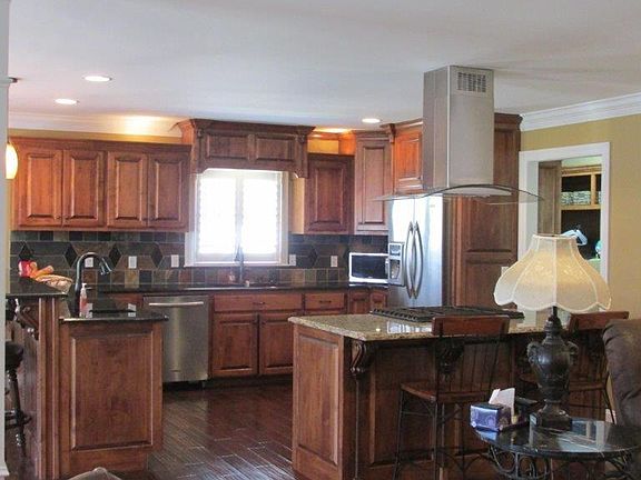 - RoomKitchenFeatures: Granite Counters, Kitchen Island, Wet Bar, Wood Floor, Smooth Ceiling