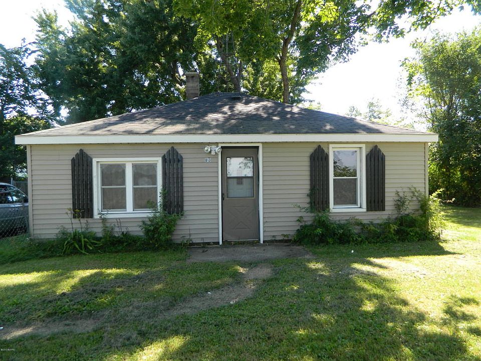 Cute 2 bedroom home with remodeled bath, new bedroom carpets & new kitchen countertop. Living room has hardwood floors and built in shelving. Extra large 2 car detached garage and fenced in yard. Vinyl sided home with newer vinyl windows.